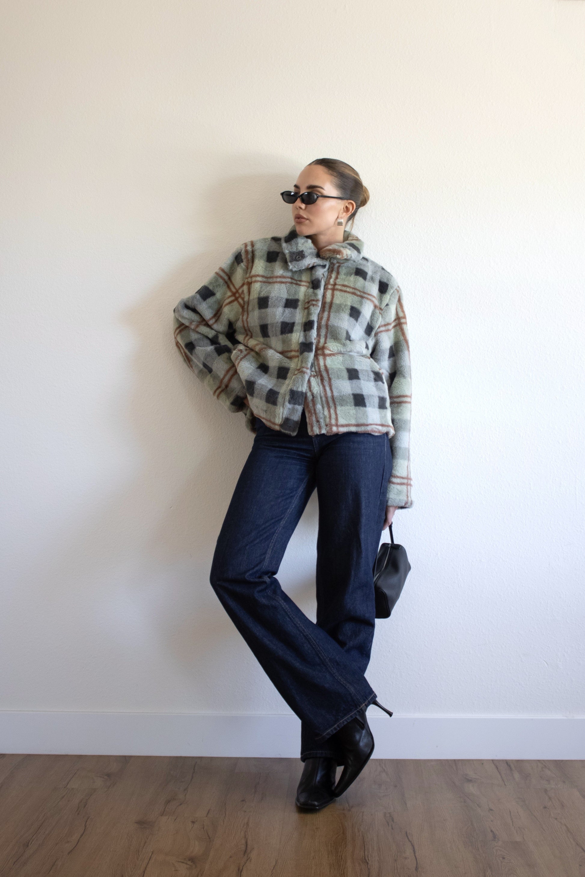 Wrap yourself in statement-making warmth with this oversized plaid fur jacket. Designed with a bold, cozy silhouette, it features a dramatic oversized collar and classic button-front closure for a timeless yet fashion-forward look. The plush faux fur texture meets a chic plaid print, making it the perfect layering piece for cold nights and standout styling. Effortlessly cool and endlessly cozy, this jacket elevates everything from denim to dresses.