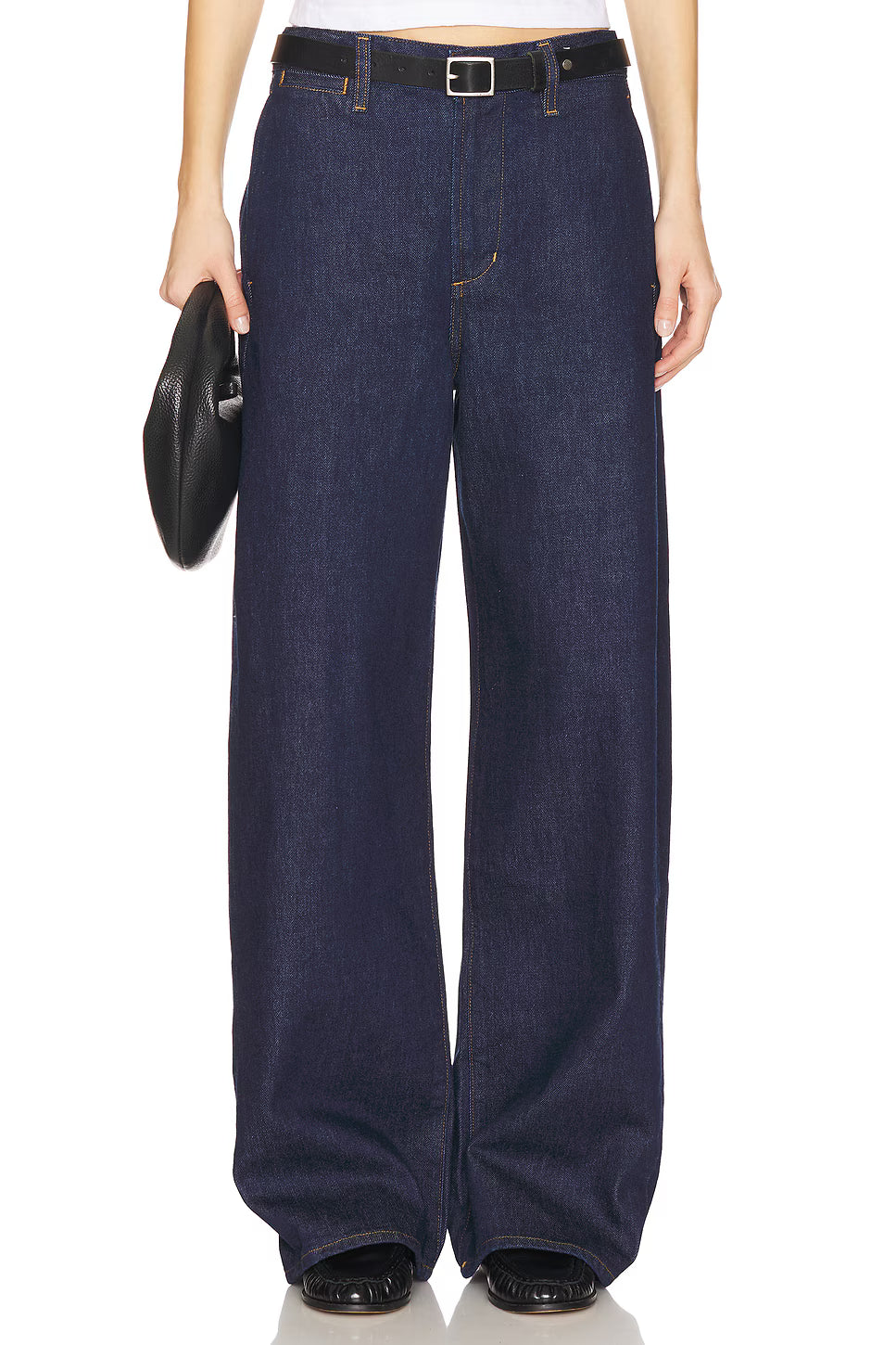 These Citizens of Humanity high-rise jeans are cut from rigid regenerative cotton denim with a soft handfeel. These dark wash jeans have an intentionally oversize fit and wide legs that effortlessly puddle. The Ayla jean is full length and baggy.