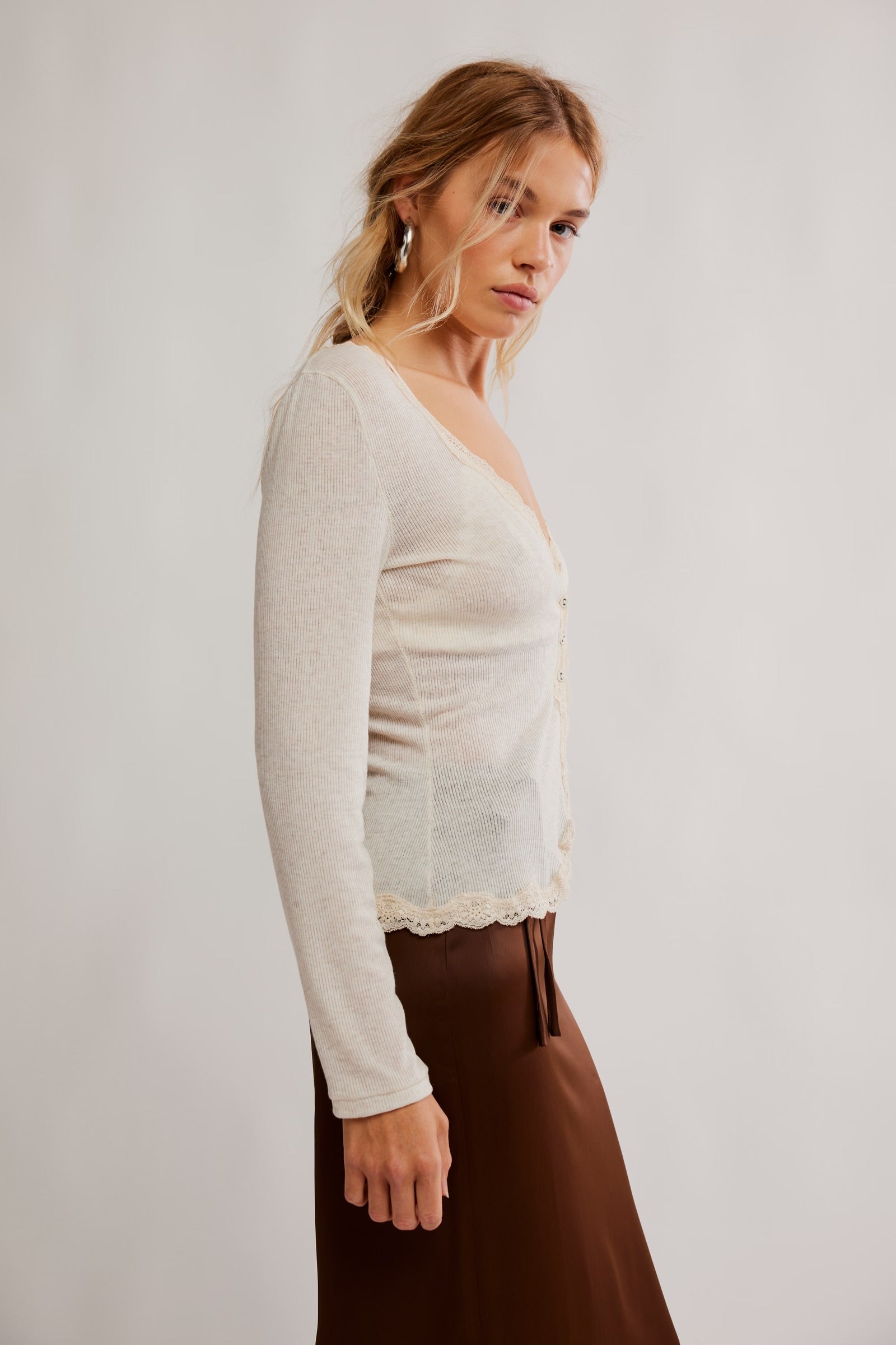 Achieve effortless style in this comfy cardi from Intimately, featured in a soft ribbed fabrication with lacy trim and dainty button closure.
