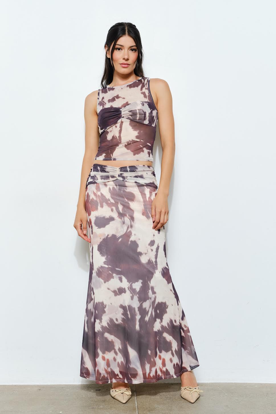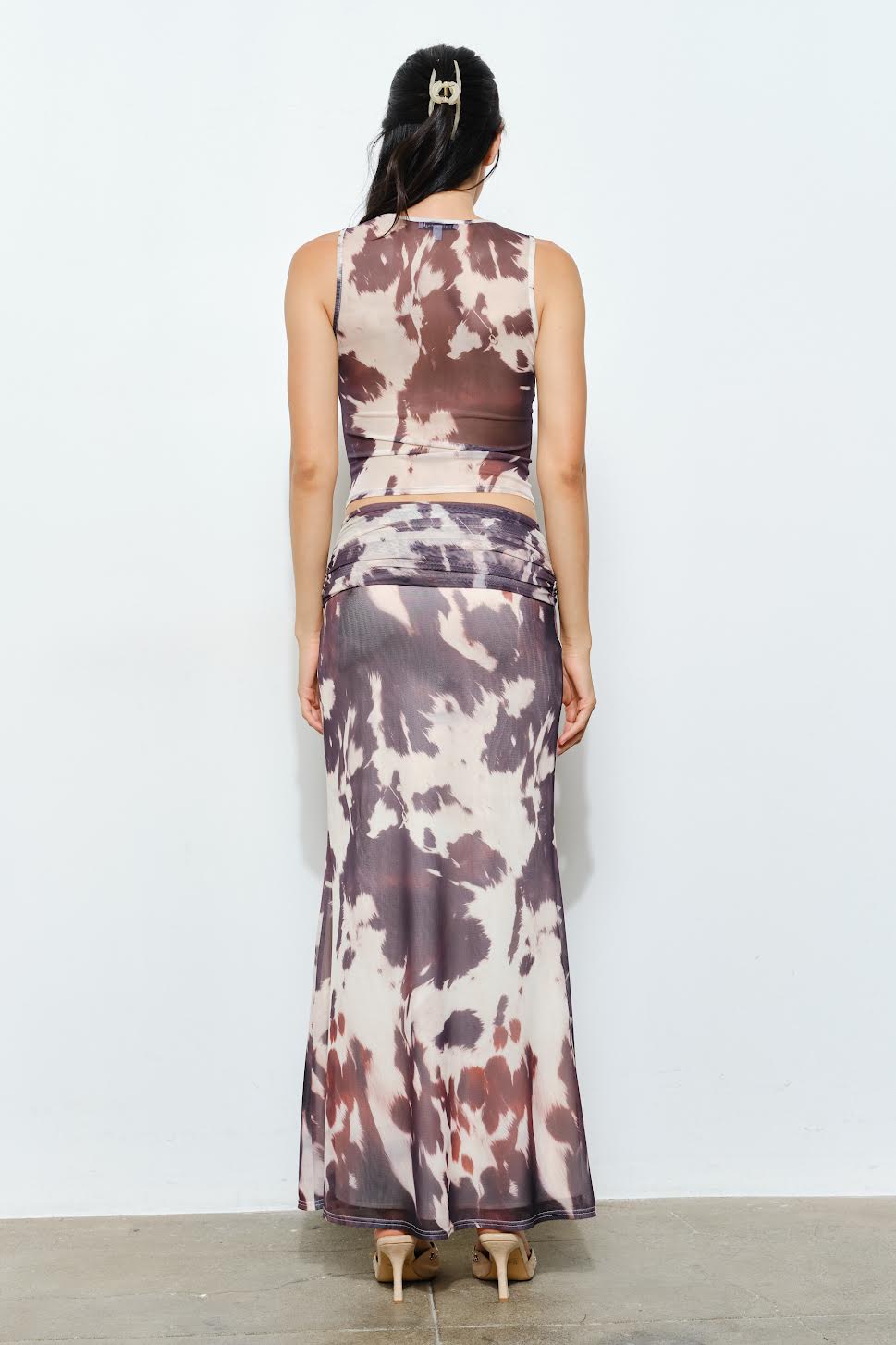 Bring a little western charm to your wardrobe with the Spotted In Style Maxi Skirt. This statement piece features a bold cow print on soft mesh fabric, delivering a playful yet polished look. Designed with comfort in mind, it comes with a wide elastic waistband for an easy, flattering fit and is fully lined for confident wear. The flowing maxi length adds a touch of drama—perfect for pairing with boots, sandals, or your favorite tee for that effortlessly cool country vibe.
