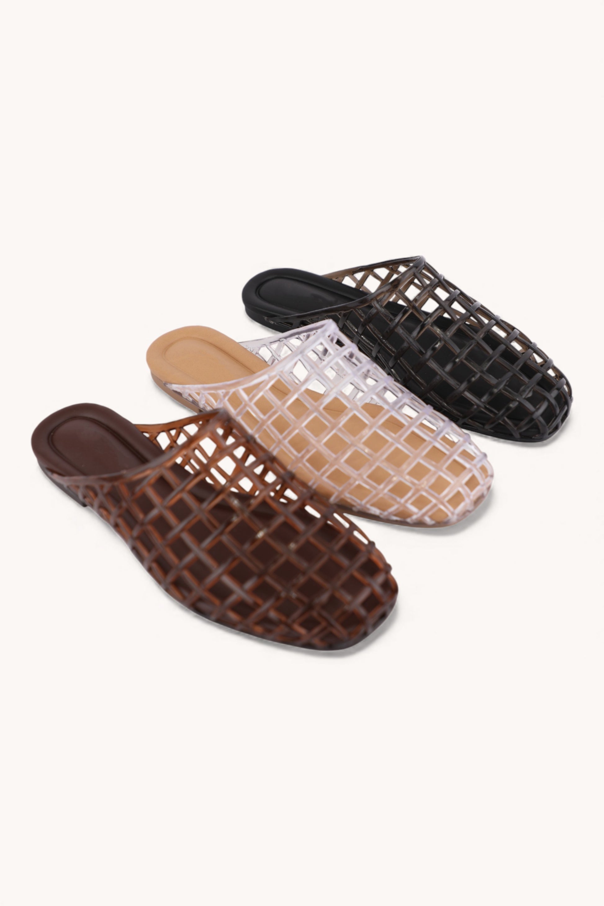 Chic and effortlessly modern, the Daphne Flat brings a fresh edge to warm-weather styling. Designed with a trendy square-toe silhouette, it features an intricate mesh netting structure that creates a sleek, airy look with subtle texture.
