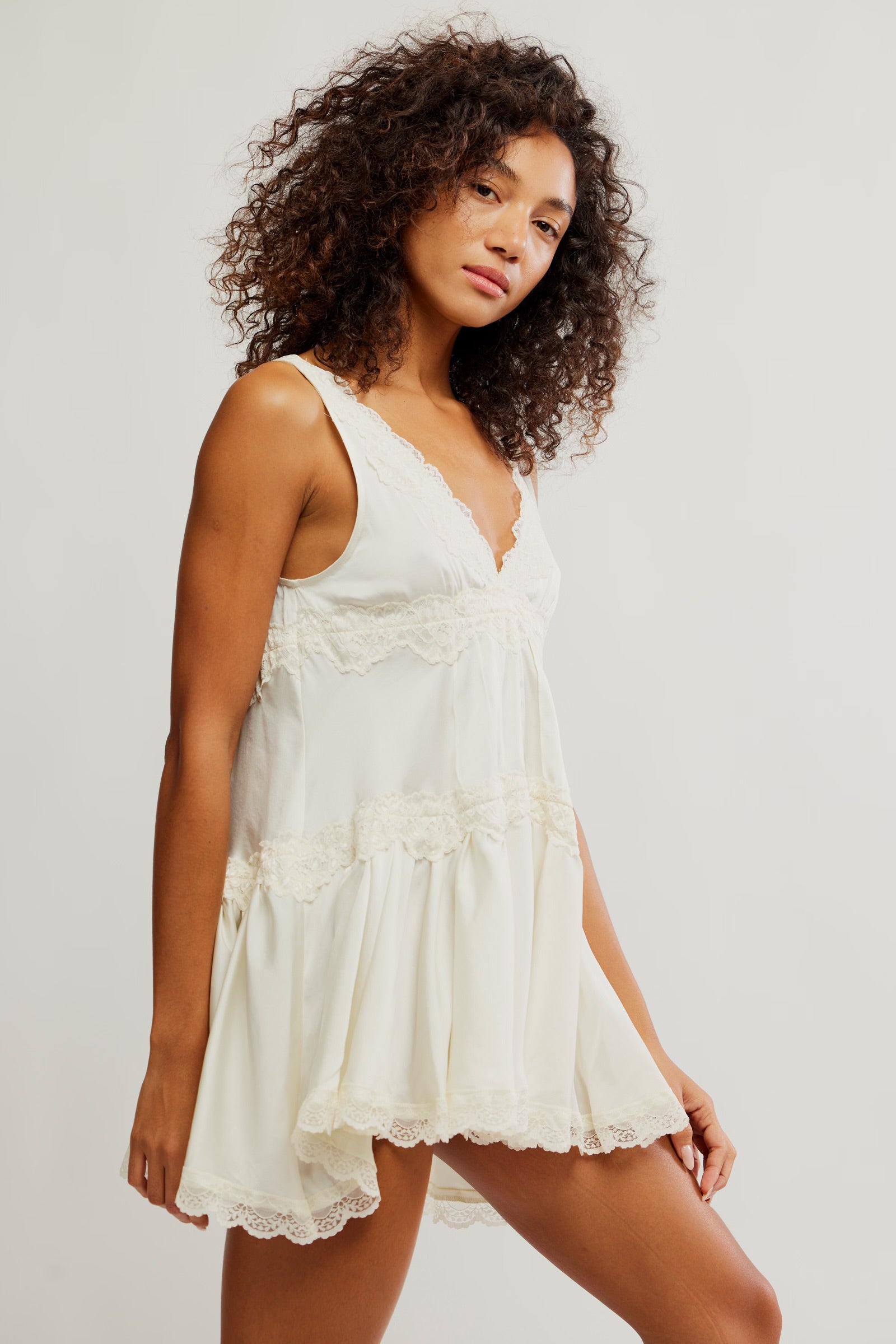 Romance awaits with this floaty mini slip from Intimately, featured in a silky, tiered design with lace trim for a truly delicate detail.