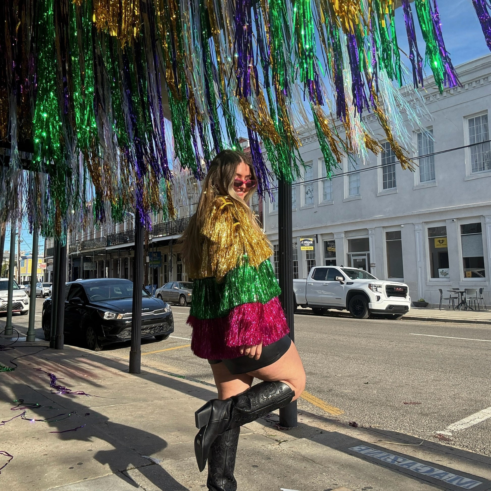 Get ready to celebrate in style with our new Mardi Gras Collection! This vibrant, festive line features eye-catching jackets, bold earrings, and statement sunglasses that will turn heads wherever you go. From flashy, beaded jackets perfect for parades to oversized, colorful earrings that add a pop of personality, this collection brings the spirit of Mardi Gras straight to your wardrobe. Complete the look with our oversized sunglasses, designed to elevate your festival style while keeping you shaded from the sun. Whether you're hitting the streets of New Orleans or just enjoying the party at home, this collection is all about fun, flair, and fearless fashion! Let the good times roll!